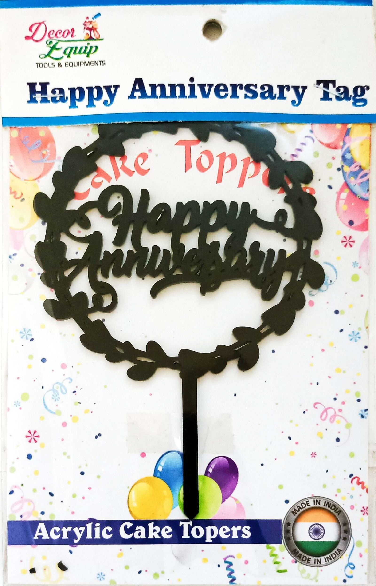 Decor Equip ‘Happy Anniversary Black Tag’ Cake Topper